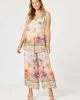 Passport Pant 48188 – Sunset Multi by Hammock & Vine at The Wardrobe Features: The Passport Print Pants are a vibrant, getaway-ready style designed to bring a touch of wanderlust to your wardrobe. Made from a lightweight fabric, these wide-leg pants feature a scenic postcard-inspired print in sunset hues, complete