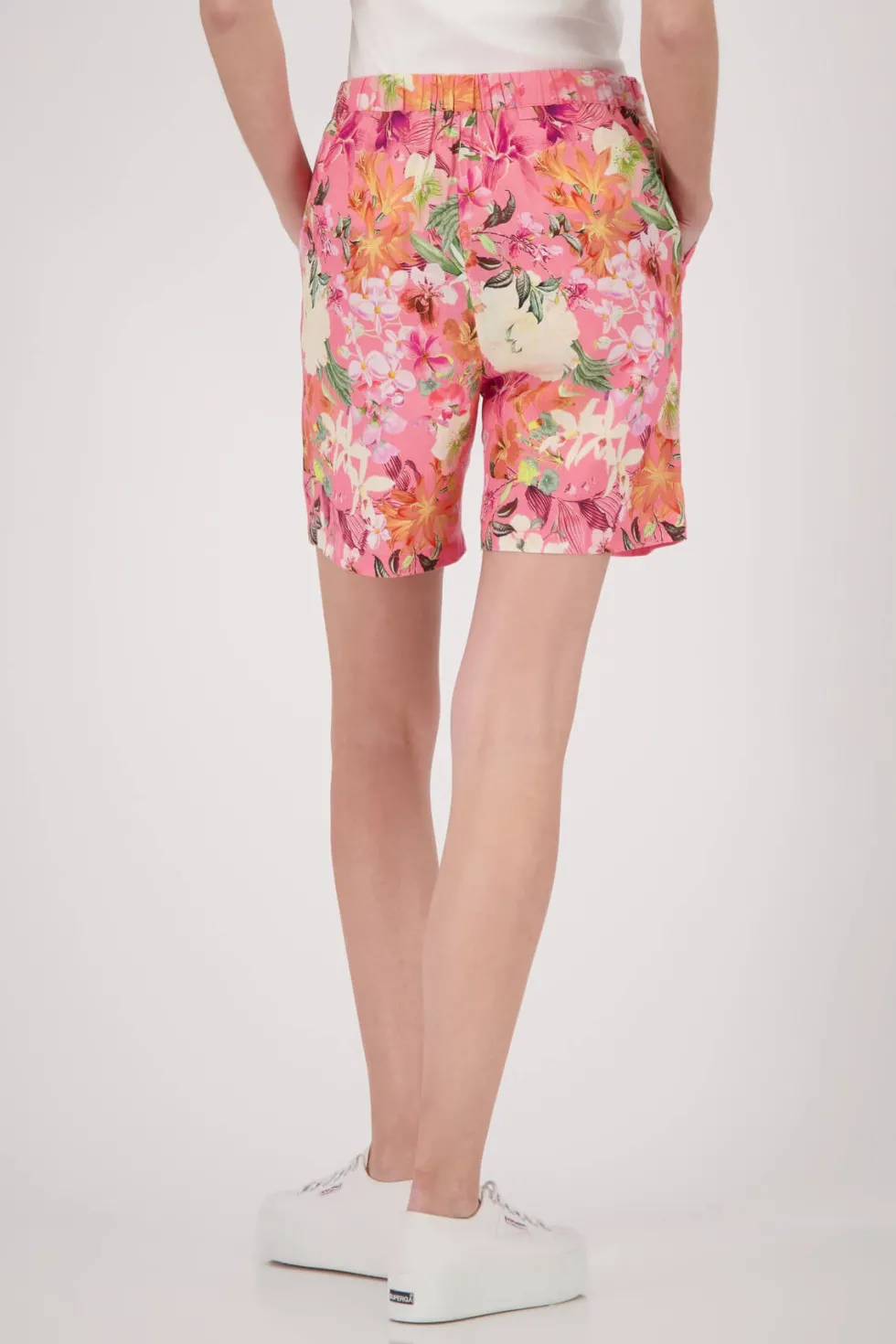 Bermuda Floral Shorts 409635 by Monari at The Wardrobe 50% cotton, 50% linen 30°C very mild fine wash, Do not bleach, Do not tumble dry, Iron at low temperature, Do not dry-clean
