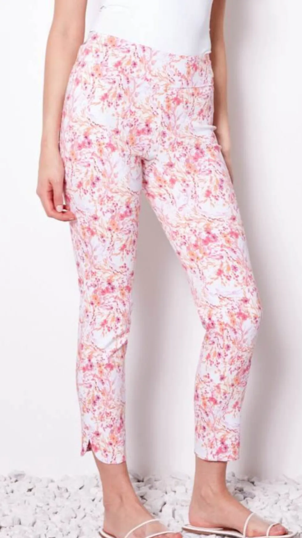 Ginger Petal-Slit Techno Ankle Pant 68476 by Up Pants! at The Wardobe Fresh, fun, and undeniably feminine, this pretty piece boasts a chic and cheerful vibe, rendered in happy hues that make a sweet summer statement. Petal vents up the girlish allure, balanced with an elegant length and a tailored aesthetic for a versa