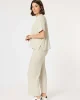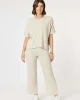Lounge Pant by Clarity at The Wardrobe 50% Viscose 30% Polyester 16% Acrylic 4% Elastane Cold hand wash separately. Do not soak, bleach or wring. Do not tumble dry. Dry flat in shade. Cool iron only. Dry cleanable. Soft ribbed knit fabric Soft and cosy to wear Easy pull-on style Super comfortable elastic waist Straig
