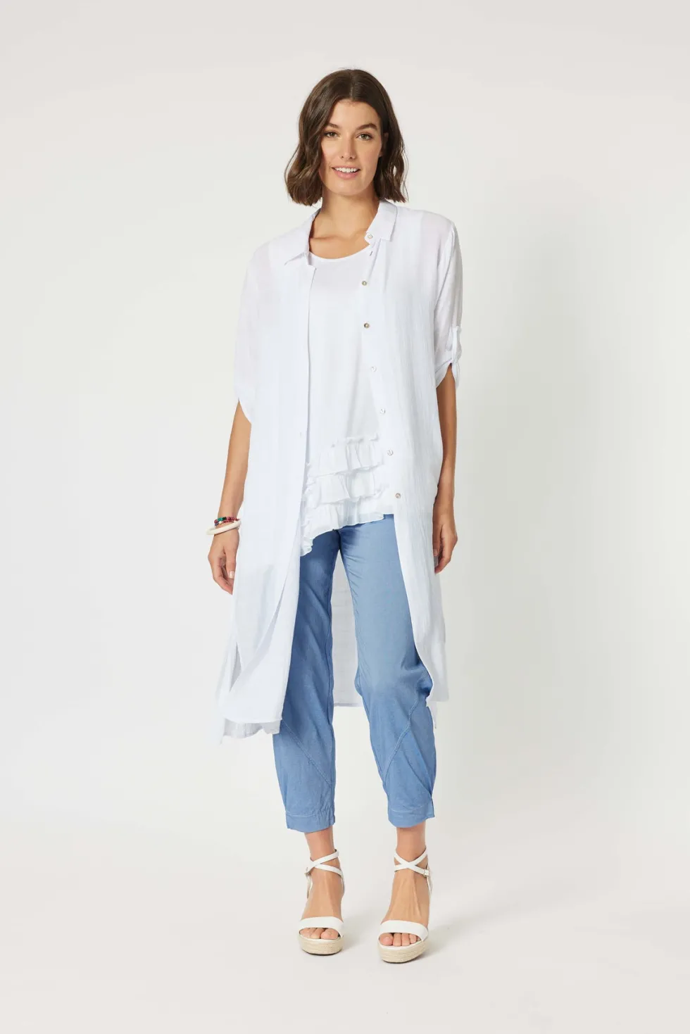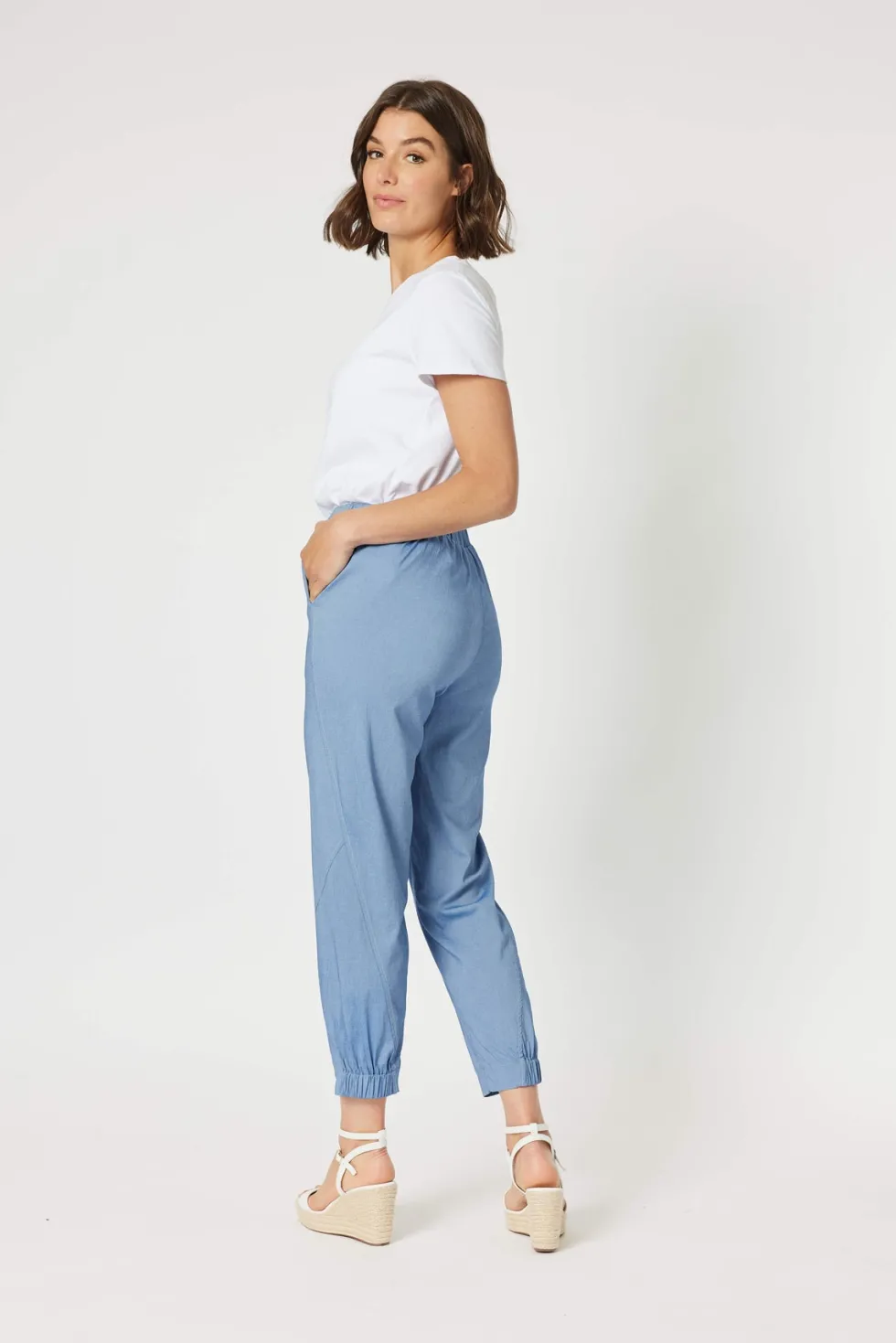Elevate your style in the Clarity Parachute Stitch Detail Pant at The Wardrobe. An easy pull on style pant, lightweight stretch fabric, flat front waistband and elastic back for fabulous fit and comfort Modern tapered leg with contrast stitch detail Designed to wear day to night Fit: True to Size Buy your usual size
