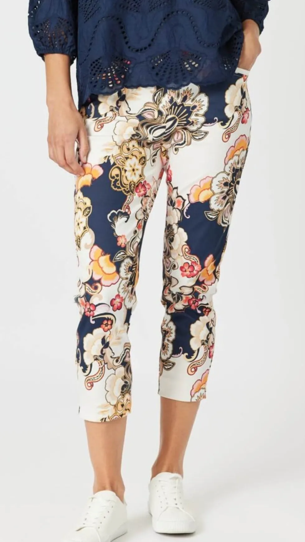 Lexi Floral Print Pant – Navy Multi 47741 by Gordon Smith at The Wardobe Get Excited!! A new print has landed in the best selling spring pants by Gordon Smith & we couldn't be more thrilled! These pants are stretchy, fit like a glove, have functioning front pockets and will stay put all day. A navy base print is a