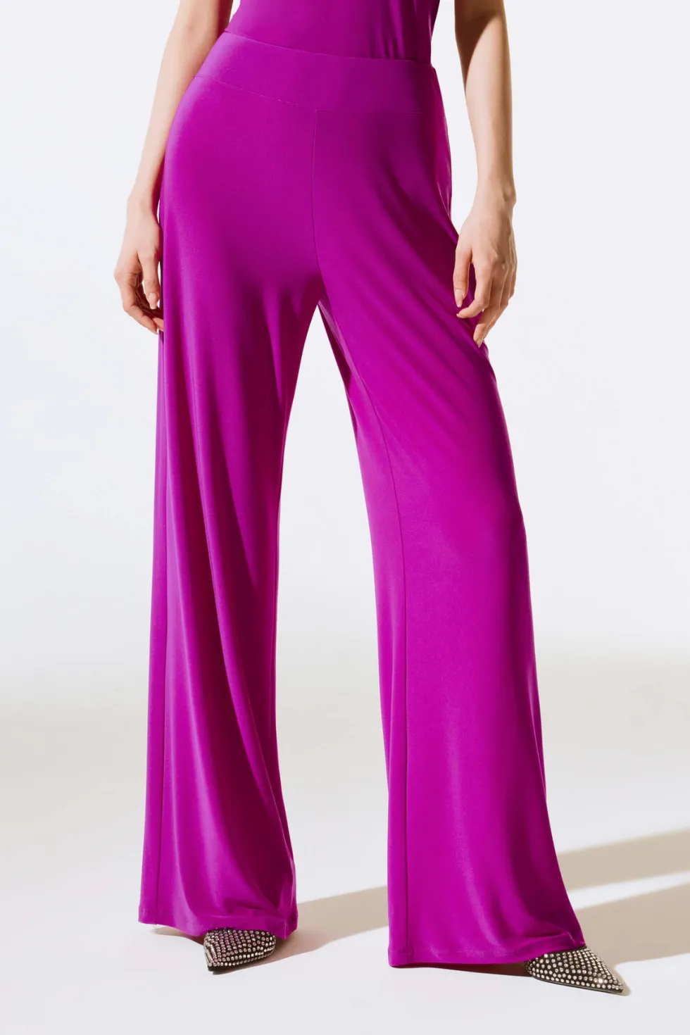 Liberty Signature Wide Leg Pants – Empress/Midnight Blue 221340F24 by Joseph Ribkoff at The Wardrobe. These stunning and simple wide-leg pants are the epitome of dressing to impress. With lustrous flowing fabric and a soft contour waistband, these versatile pants complement your body beautifully. Walk with confidence w