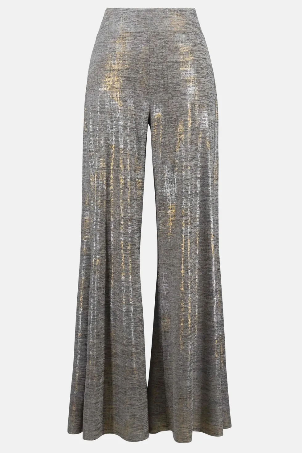 Supernatural Foiled Melange Knit Wide-Leg Pants – Beige 253274 by Joseph Ribkoff at The Wardrobe. These mélange knit pull-on pants make a statement with their shimmering foiled finish. The wide-leg silhouette accentuates every step with poise and dramatic flair. The soft contour waistband ensures a comfortable fit, whi