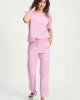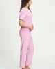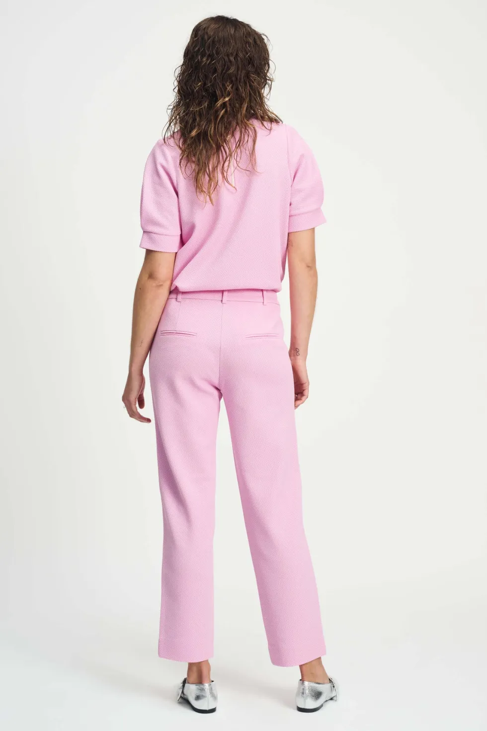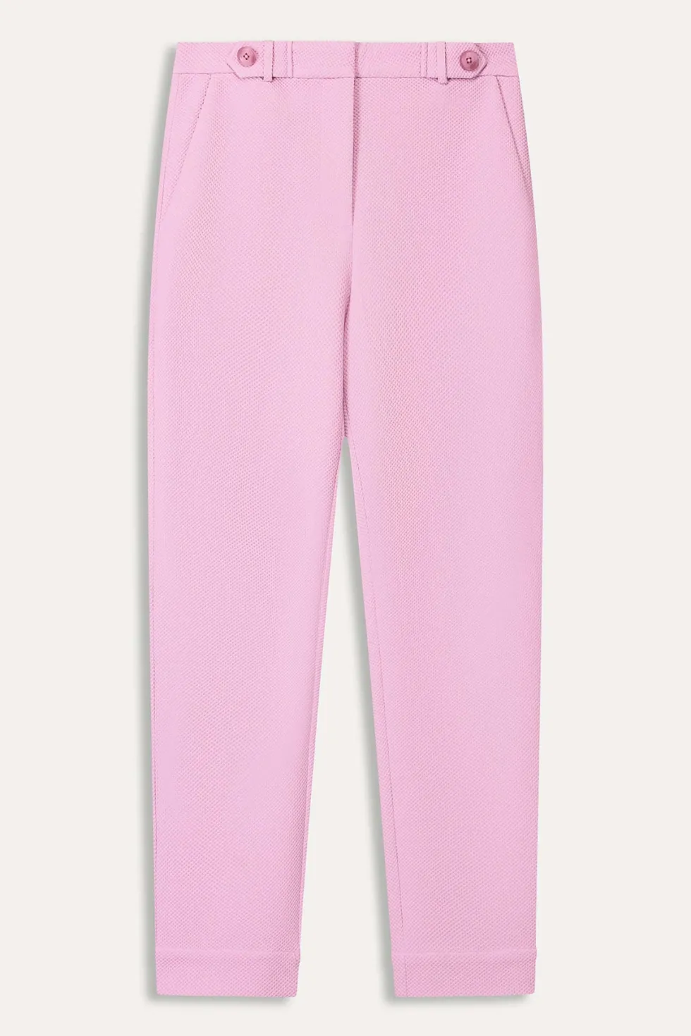 Tapered Pant – Rose 9104 by POM Amsterdam at The Wardrobe Discover the new model of the popular Piqué fabric in pink. The fabric is made of recycled polyester, making these pants 'more sustainable'. The waistband is finished with decorative buttons for a chic look. • Pink pants • Decorative buttons on the waistband • T