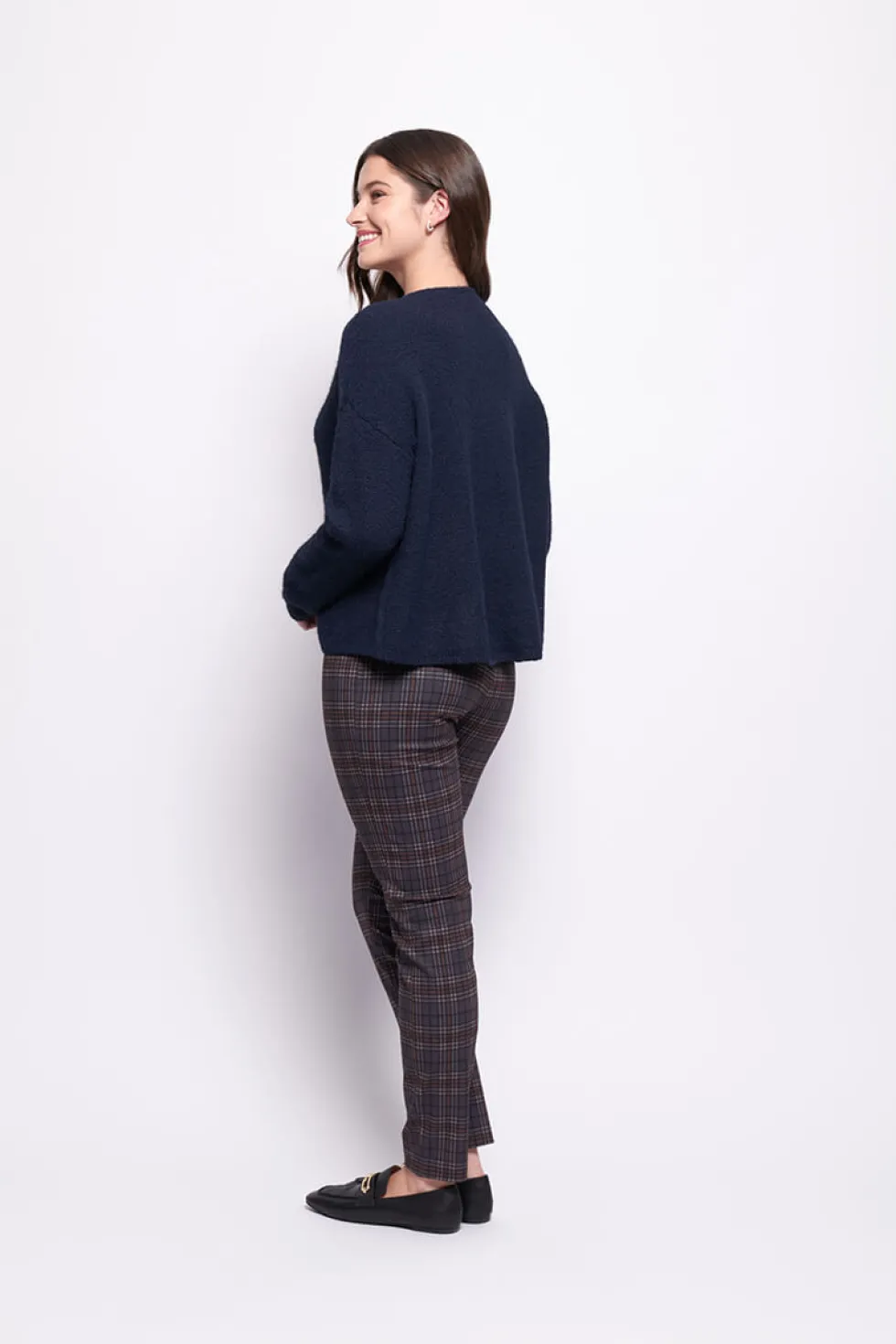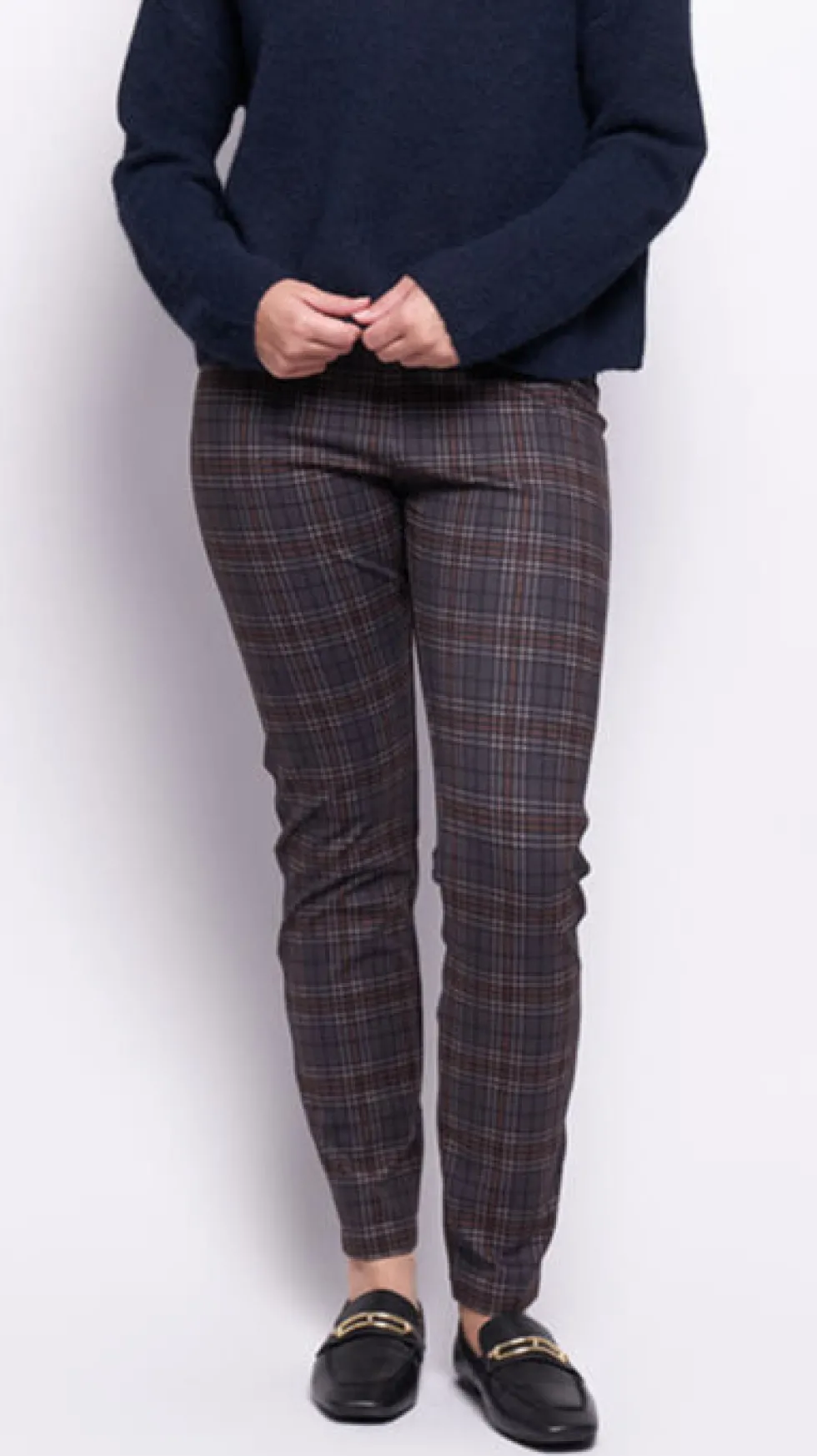 Go To Print Pant- Check in FO8095 by Foil at The Wardrobe. Pont Pant – Pull up , hidden elastic waist band. Slim leg, Stretchy 79% Polyester , 16% Viscose , 5% Elastane Cool machine gentle wash.
