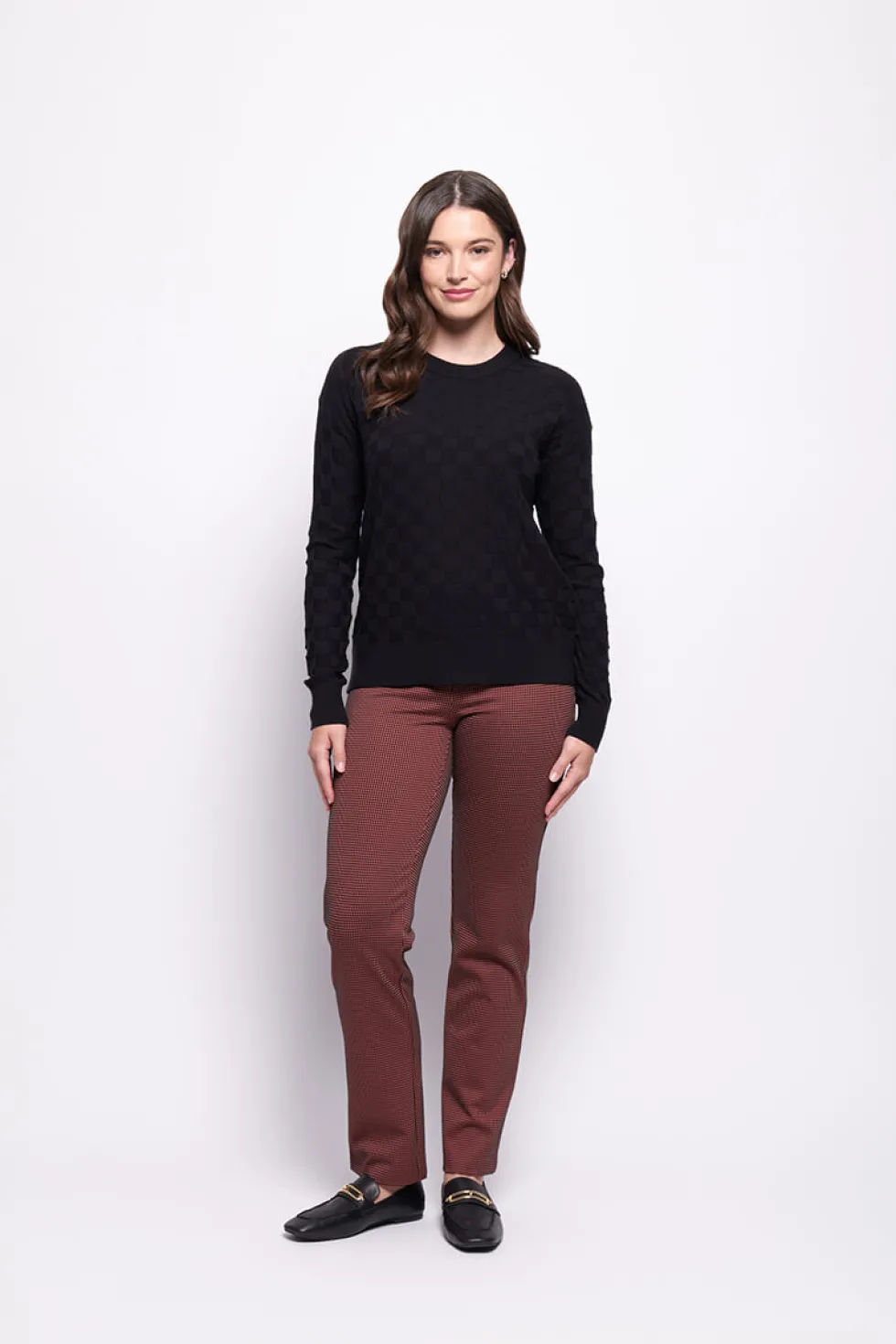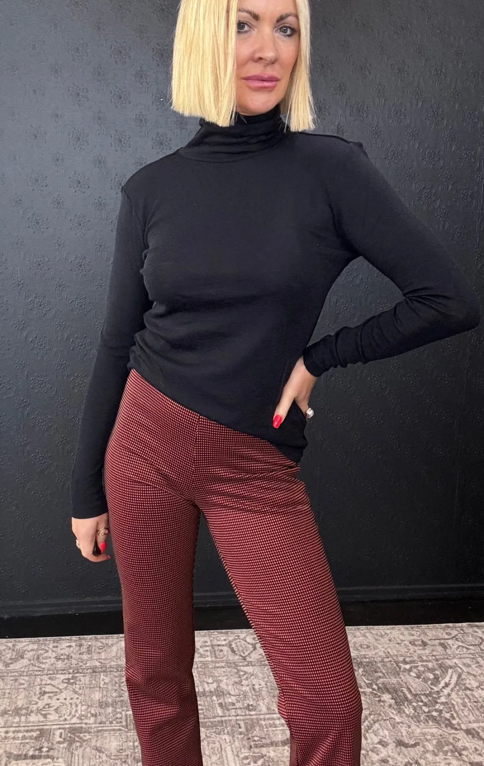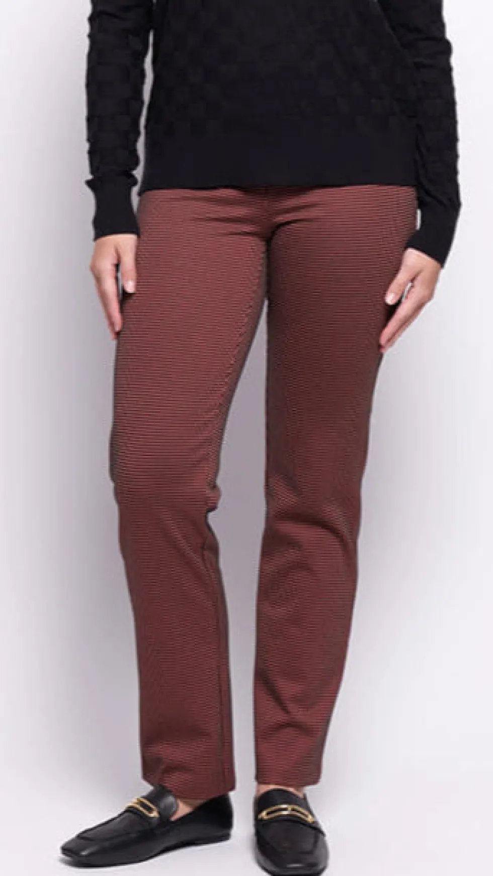 Pic Of The Bunch – Red Diamond FO5190 by Foil at The Wardrobe. Pont Pant – Pull up , hidden elastic waist band. Slim leg, Stretchy 65% Polyester, 30% Rayon, 5% Elastane Warm gentle machine Wash. Drycleanable