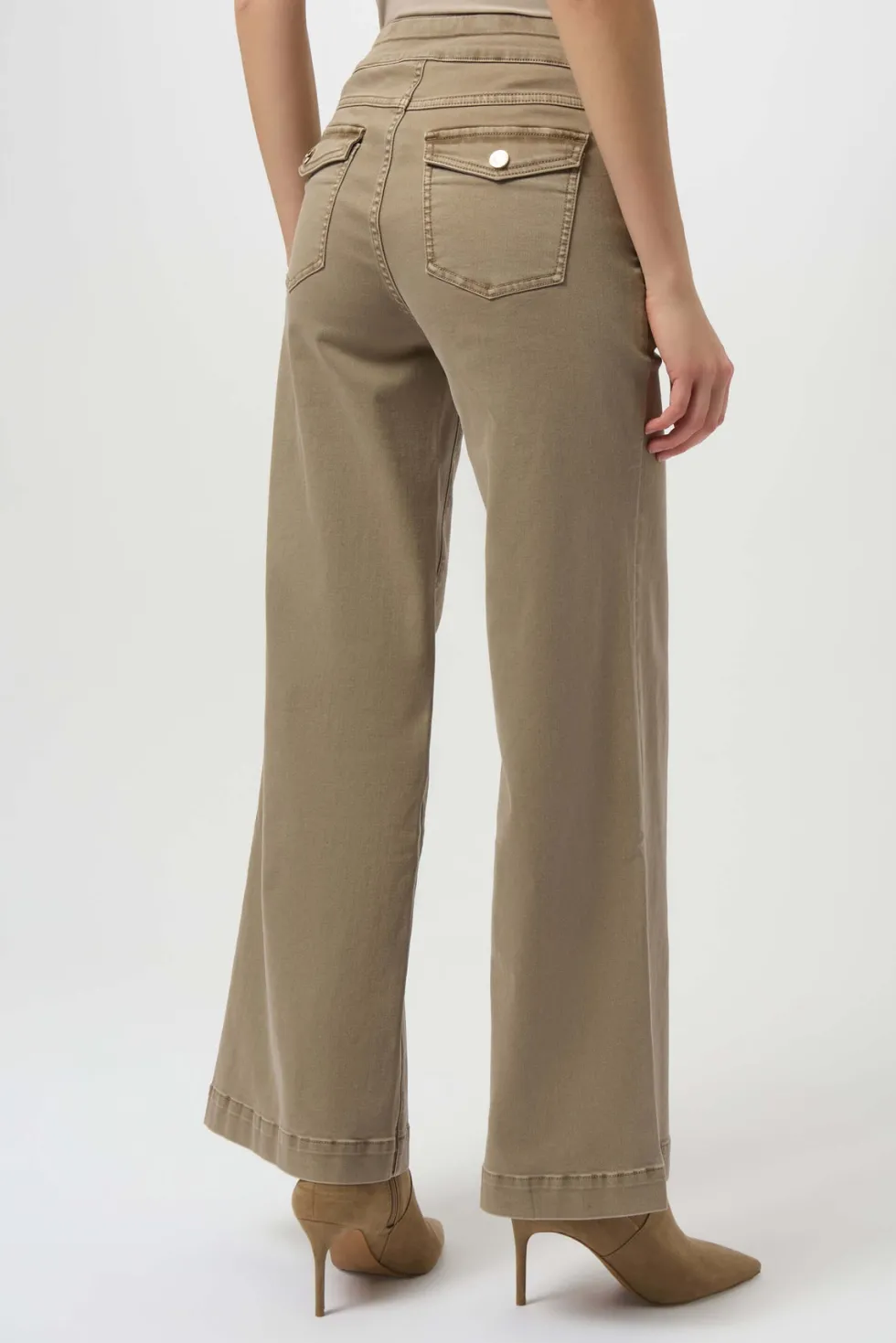 Best Bookers Classic Wide Leg Pull-On Jeans – Fawn 254919 by Joseph Ribkoff at The Wardrobe. Designed with the classic wide leg silhouette you love, these pull-on jeans feature stylish snap buttons on the pockets. Made from soft, stretchy Repreve® denim, they’re a perfect blend of comfort and style for effortless casu