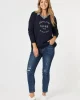 LA Stretch Pull On Jean – Dark Denim 35371 by Threadz at The Wardrobe. We Love a stretchy Jean! Crafted from a super stretchy denim fabric with an encased elastic waistband that gives you 10/10 all day comfort Of course it has front and back patch pockets Don't worry about the distressing design feature being see throu