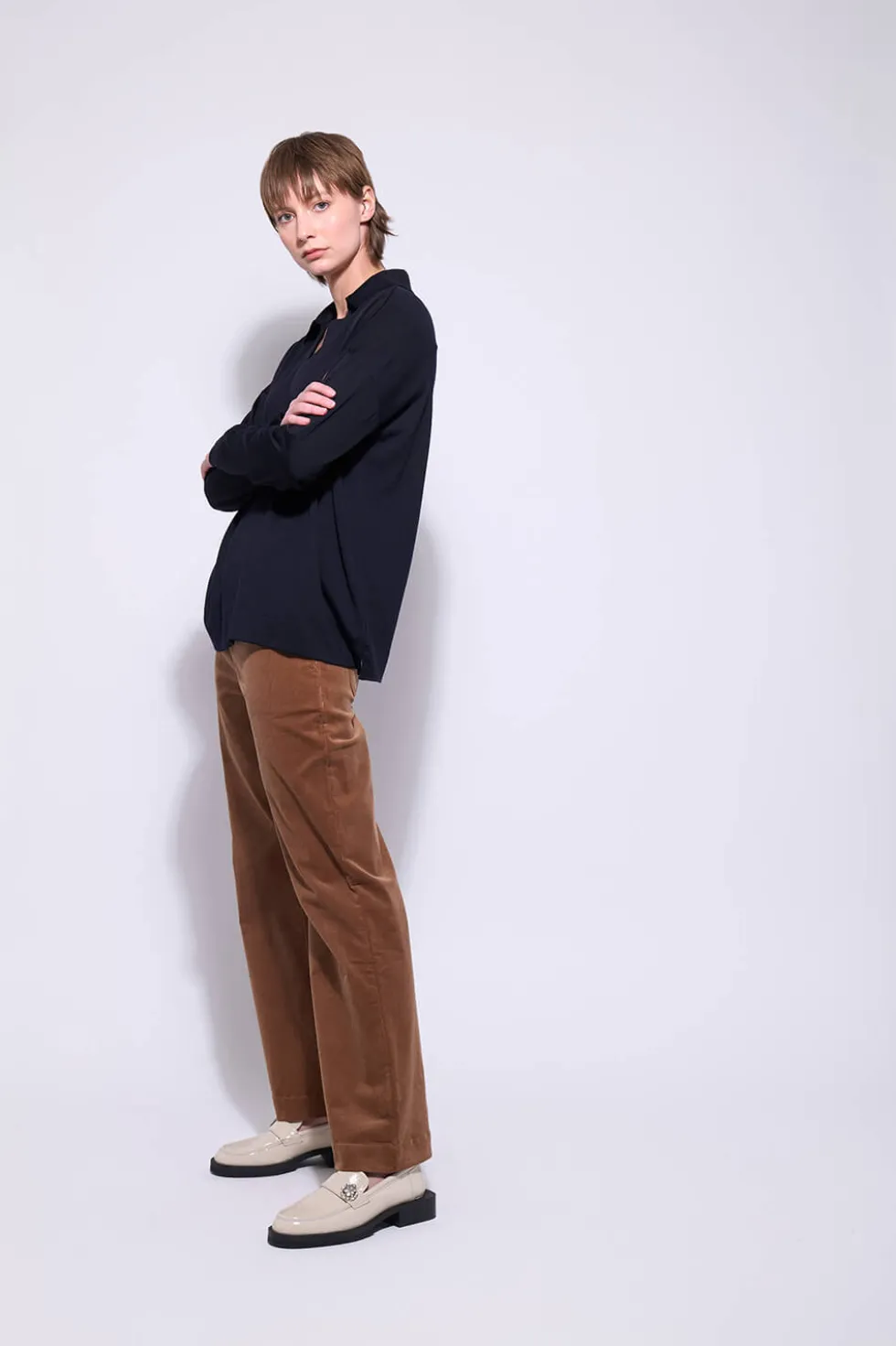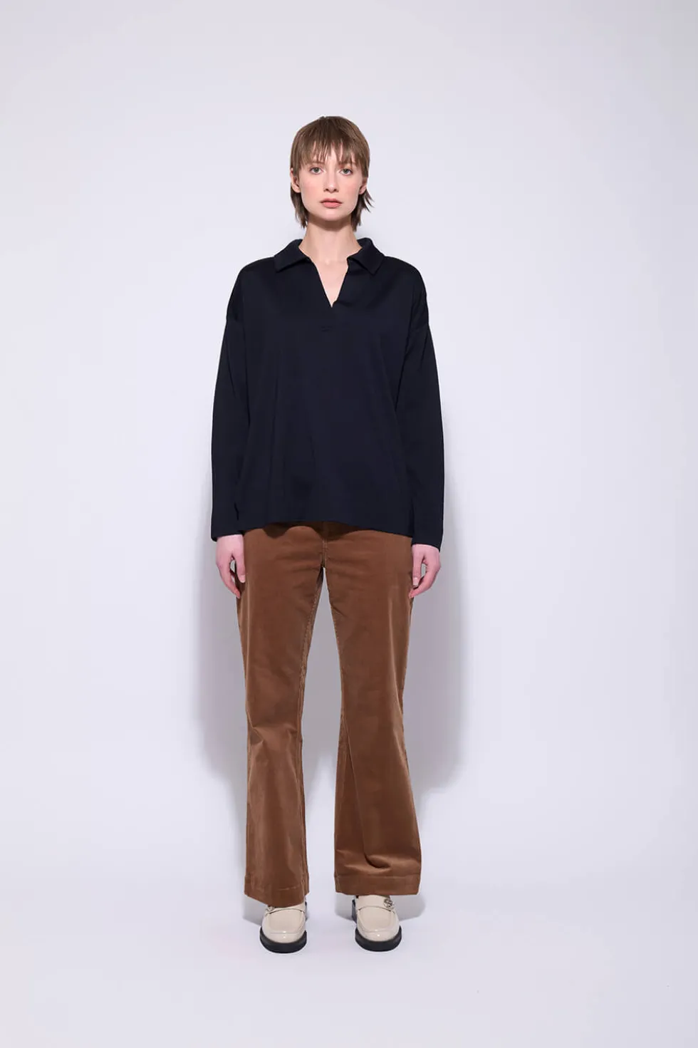 The Whale Rider Pant 2723 by Neris at The Wardrobe, comfortable and stylish, these cut-cord pants have stretch the offering a relaxed fit with a straight-leg design. Featuring side and back pockets, a mid-waist rise, and a button-and-fly closure, they’re perfect for casual wear or pairing with matching tops for a coord