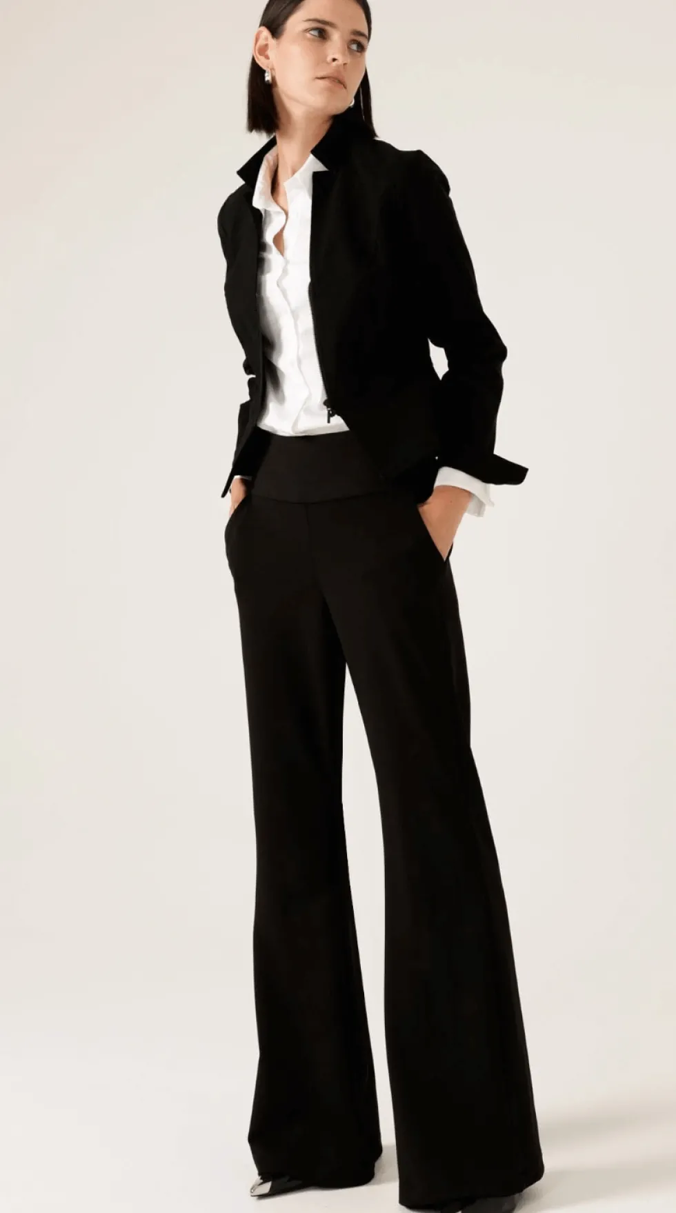 TheClassic Trouser by Sacha Drake at The Wardrobe, combines elegance and comfort with its textured stretch fabric and flattering subtle flared leg. Made in Australia, this pull-on style features a sleek stretch satin waistband and functional pockets, making it a perfect choice for work. Sacha Drake Designed in Austral