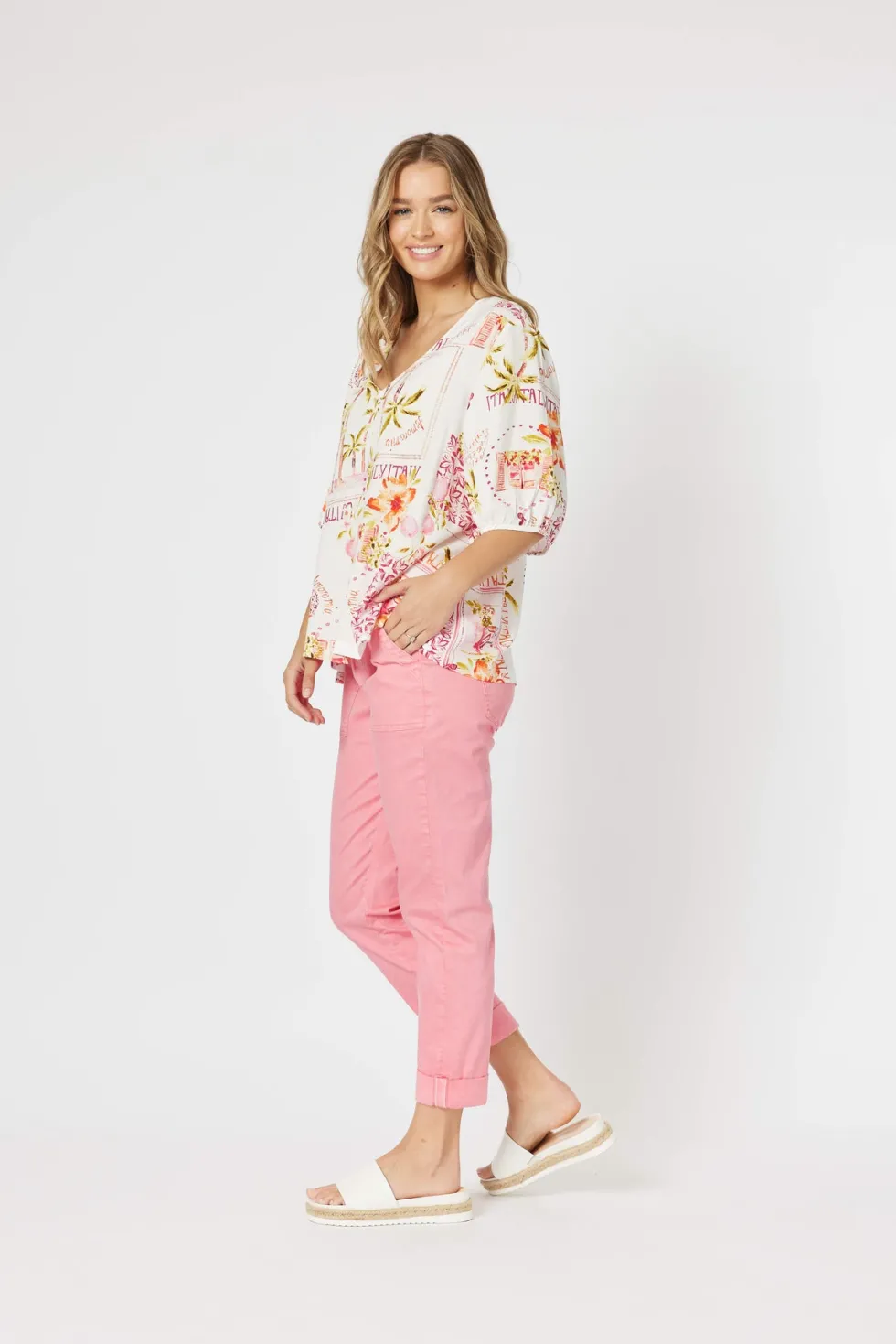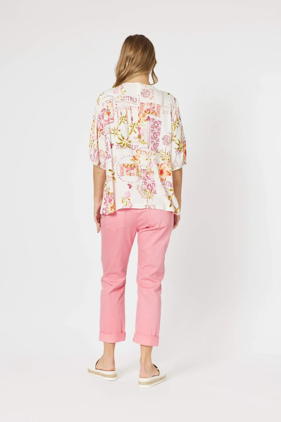 We love the simplicity in styling of the Ciao Bella Top by Threadz The print does all the talking on this one Easy pop over the head style with the most divine elbow length sleeves This light and floaty viscose fabric will have you looking and feeling fabulous from the moment you pop it on Pair back with the Bella Pant