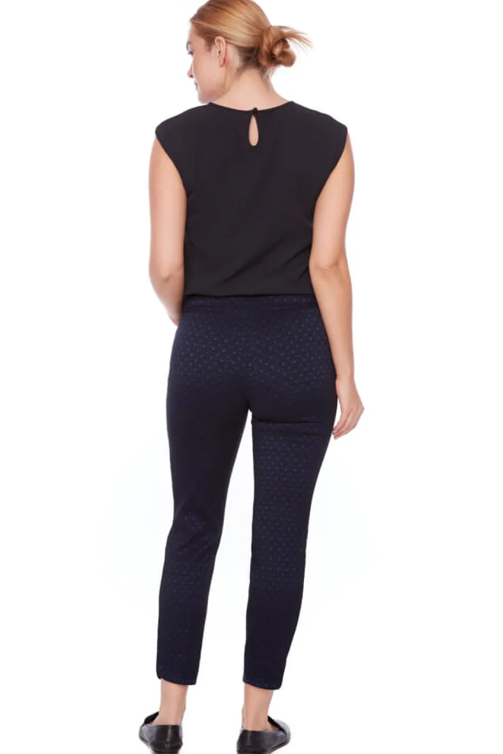Petal-Slit Techno Ankle Pant – Blue/Black Blaze 68230 by Up Pants at The Wardrobe Dial up the drama with a dose of understated glam. The Blaze pant exudes a fierce femininity with stylish swagger, featuring an elegant geometric and a subtle, sultry sheen. Rendered in deep navy hues, the tonal look is less severe than c
