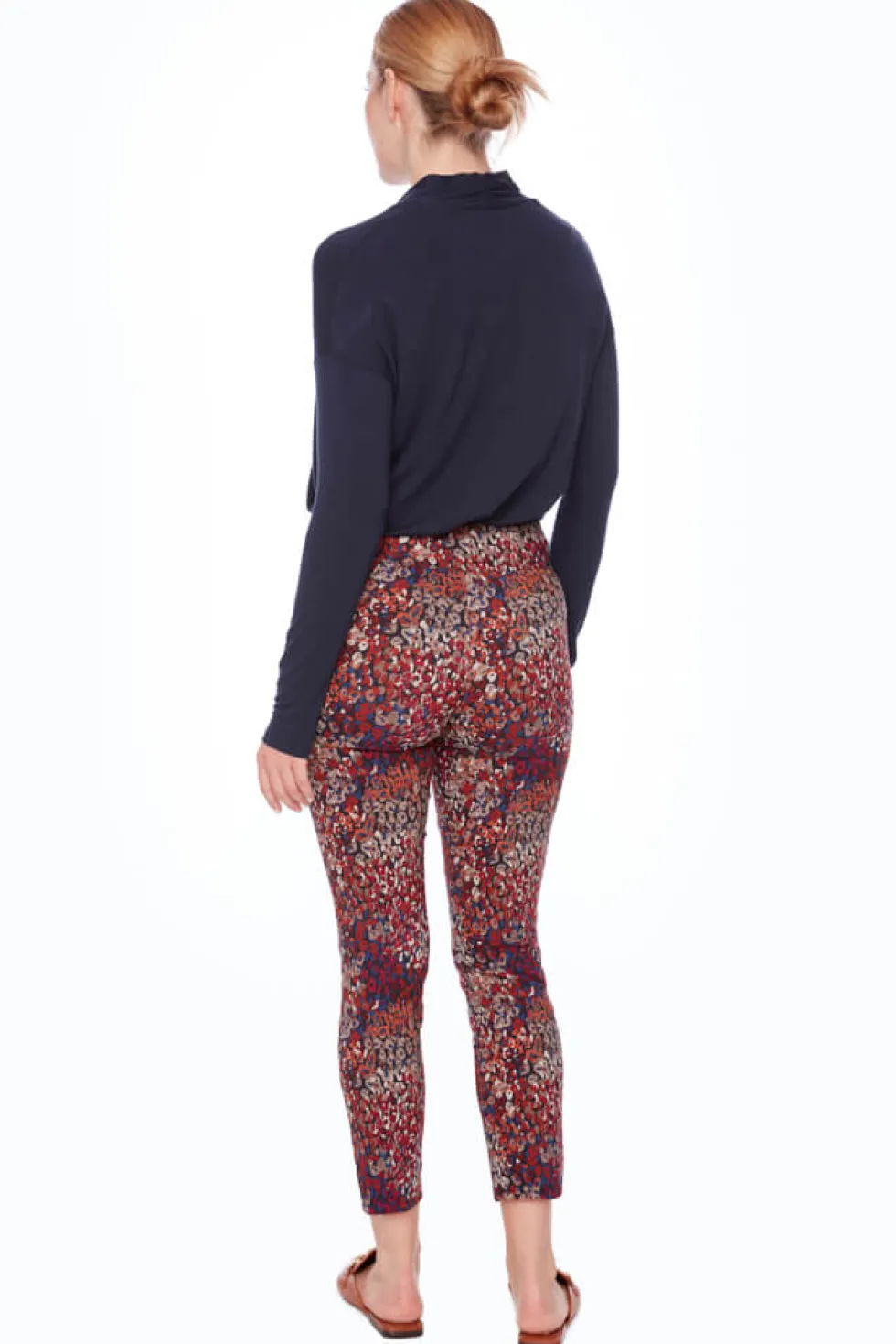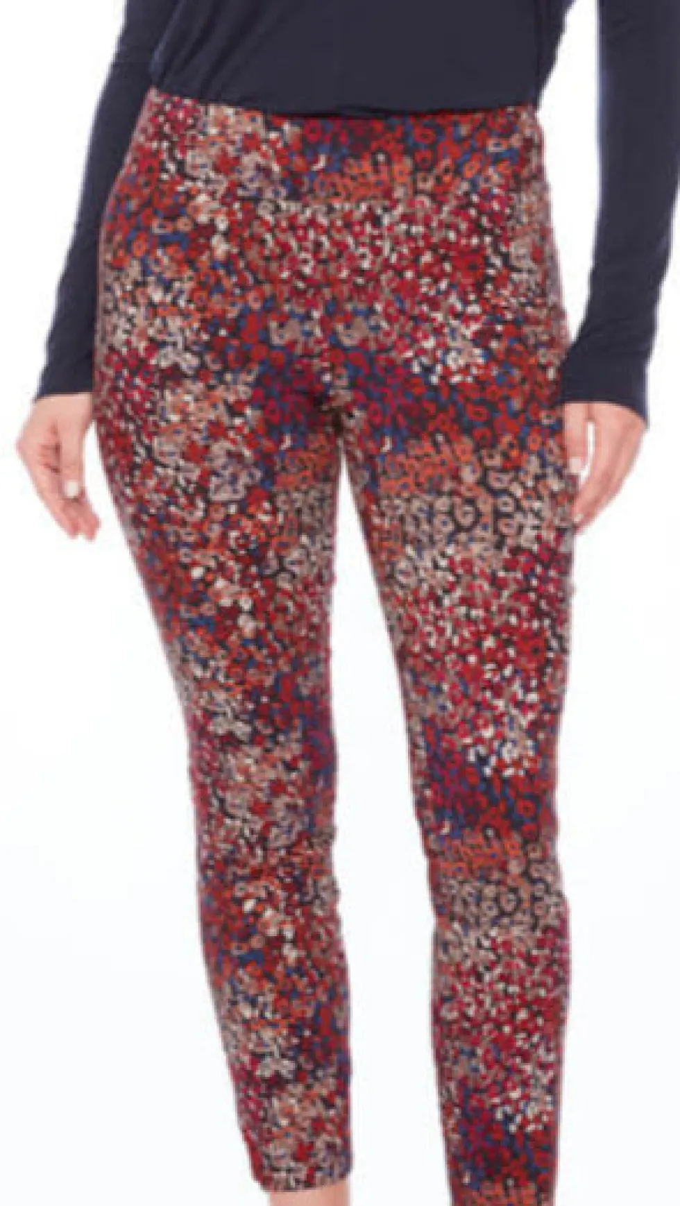 Petal-Slit Techno Ankle 28" Pant – Cranberry 68277 by Up Pants at The Wardrobe Make a sweet and stunning statement this season with trendy micro-florals. Featuring tiny buds in rich hues that pack a pretty punch, this happy piece exudes a whimsical allure that’s fun, fab, and decidedly feminine. Petal vents and a chic