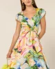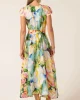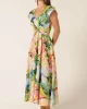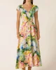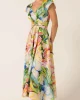 Dahlia Midi Dress by Sacha Drake at The Wardrobe TheDahlia Midi Dressis made from a deluxe printed linen and features a faux wrap bodice, front pleating, and an A-line silhouette. An elasticated back waist ensures a comfortable fit, while a self-tie belt with crystal bead ends adds the finishing touch. Dress up for