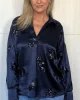 After Dark Shirt – Midnight Blue 47272 by Hammock & Vine at The Wardrobe Experience luxury and elegance with our After Dark Shirt. The silky soft fabric, delicate floral sequin details, and classic collar will make you feel sophisticated and stylish. Unleash your inner fashionista and elevate your wardrobe with th