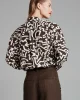 Kim Shirt 7904 by Pom Amsterdam at The Wardrobe. This unique blouse from the POM Amsterdam x Claes Iversen collection at The Wardrobe, inspired by abstract art, is a real eye-catcher for those who dare to stand out with their style. The blouse has a striking graphic brown-white pattern, consisting of playful, geometric