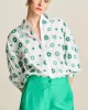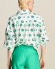 This white blouse has a pattern of embroidered green suns. The blouse is made of 100% organic cotton, so it feels wonderfully airy.• White blouse• Embroidered design• Mid-length sleeves• Row of buttons on the front• 100% organic cotton• Sustainable materialFit: The blouse has a wide fit and three-quarter sleeves. The m