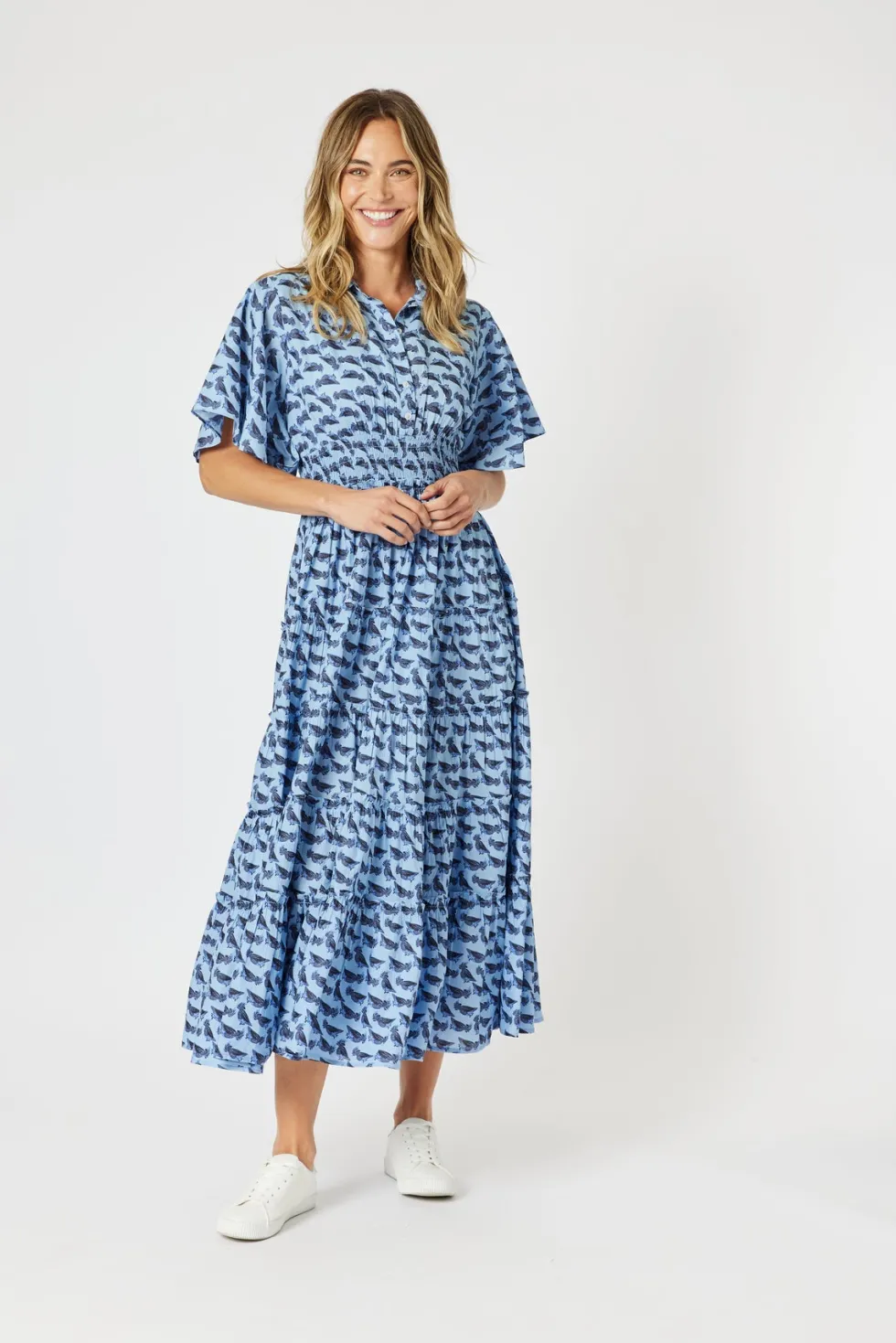 Cockatoo Midi Dress – Blue – 48233 by Gordon Smith at The Wardrobe Fun, feminine, and effortlessly wearable, the Blue Cockatoo Dress is a summer standout. Showcasing a playful cockatoo print on a fresh blue base, this dress is crafted from lightweight 100% cotton with a soft cotton lining for added comfort. A classic c