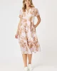 Haiti Dress – Pink/Natural 48336 by Gordon Smith at The Wardrobe The Haiti Floral Dress captures effortless femininity with its classic Gordon Smith silhouette and tropical-inspired print. Crafted from lightweight fabric, this midi dress features a soft pink base with warm-toned florals for a fresh summer look. Designe