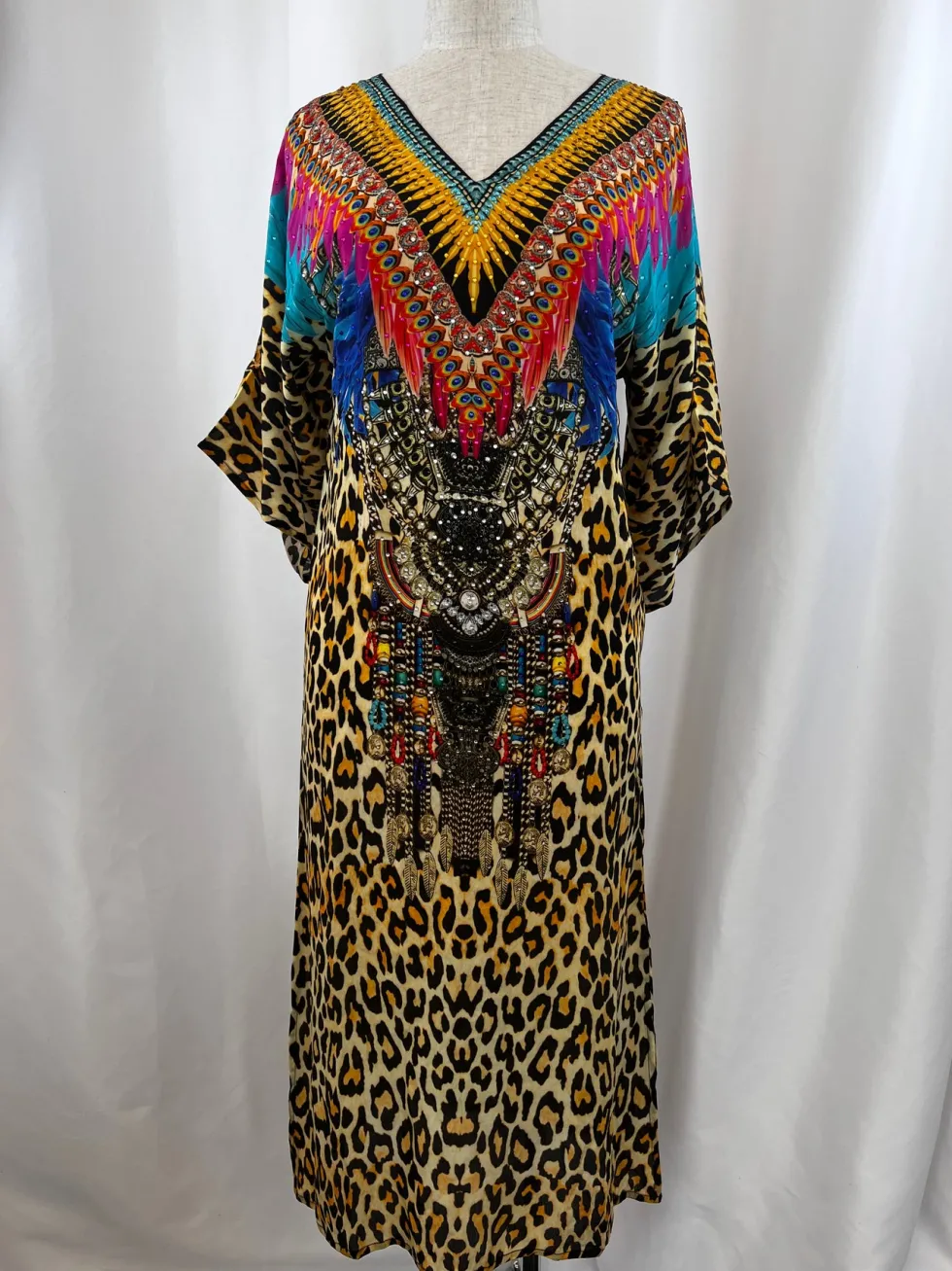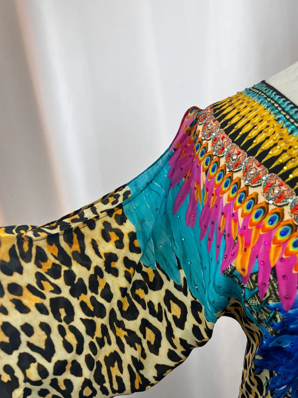 100% Viscose Silk Split On Shoulder Midi Length