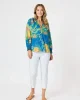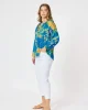 Tropics Shirt – Blue/Multi – 48125 by Threadz at The Wardrobe Brighten your wardrobe with The Tropics Blouse, a vibrant piece bursting with bold blooms and lush greenery. Set against a striking blue backdrop, the tropical-inspired print brings a fresh and lively touch to any outfit. This button-through style features l