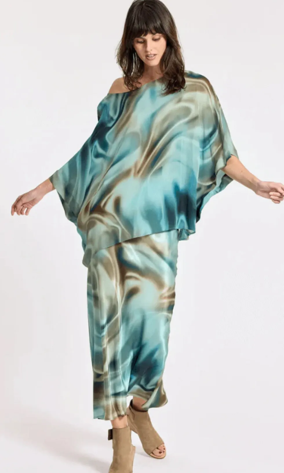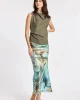 Vera Green Bias Skirt by Lauren Vidal at The Wardrobe Combining fluid elegance with summer lightness, the Vera skirt accompanies your days with ease. Its bias cut enhances movement and flatters all body shapes, in a print with soft, contrasting tones. Long bias-cut skirt for a naturally slim silhouette Fluid satin fabr