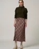 Thistle Skirt – Brick Multi MS1509 by Madly Sweetly at The Wardrobe Bias cut skirt with an elasticated waist, creating a flattering fit. 50% Viscose 50% Rayon Cool hand wash using mild detergent. Do not rub/soak/wring/bleach, do not tumble dry. Dry away from direct sunlight. Warm steamy iron to resume size and shape.