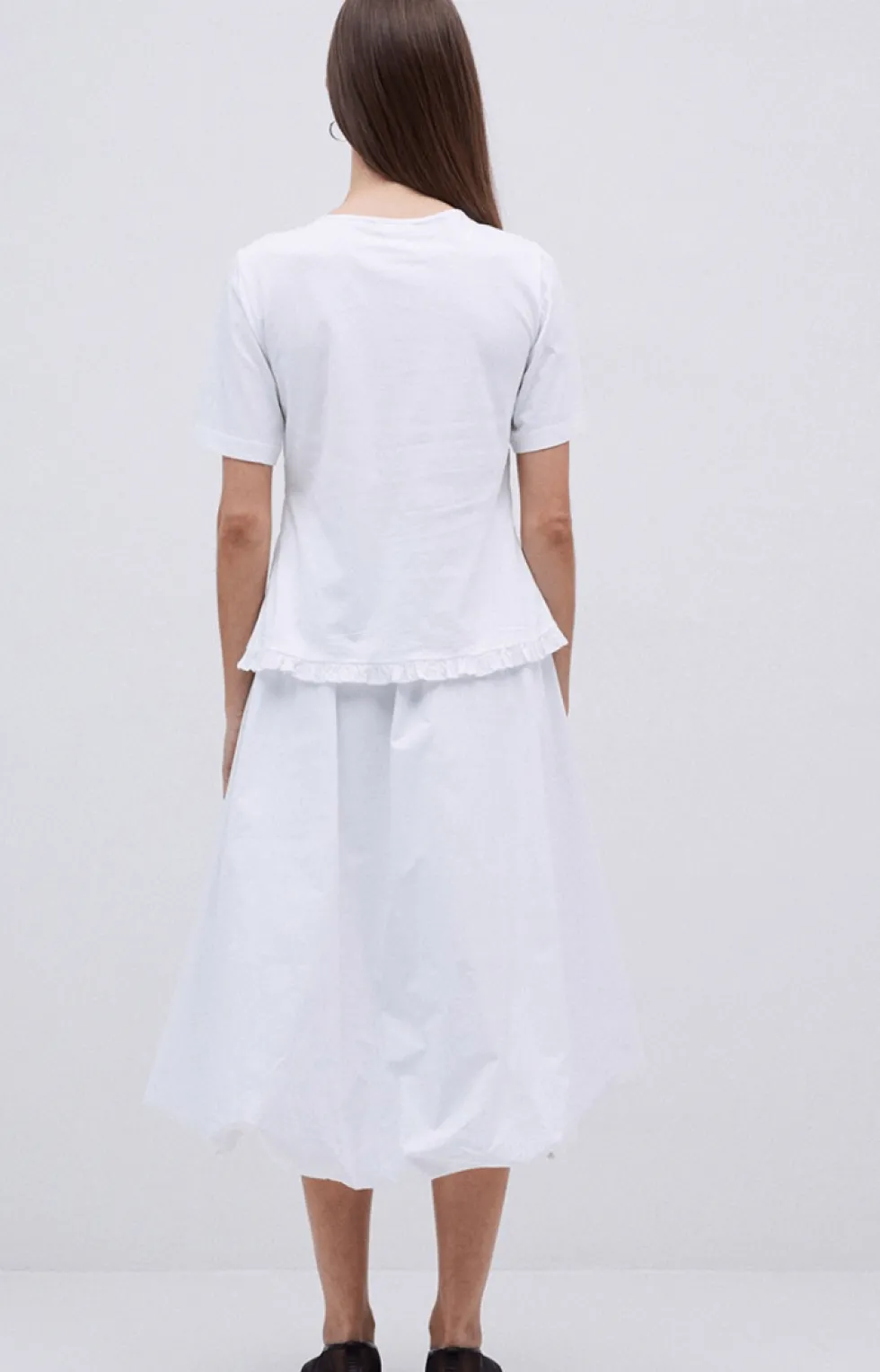 White Popplin Balloon Skirt 42876 by Yerse at The Wardrobe. Poplin skirt.100% cotton fabric.Balloon-style design. Elastic waist. Elastic detail at the hem. Model is 175 cm tall wearing size S MATERIALS: The characteristic ribbed texture of poplin results in a smooth, durable and breathable finish.Cotton garmentsa