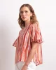 Draw The Line Blouse – Azure Stripe 2834 by Neris at The Wardrobe The Draw The Line Blouse is a striped short-sleeve shirt with a scoop neckline and button-down front. With a loose fit and subtle flared sleeve, it’s a playful piece that still feels polished. Designed in Christchurch, New Zealand. Softly voluminous and