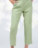 Quinn Pant – Pistachio LS3038 by Loobie's Story at The Wardrobe Tapered pant, with a mid-rise, and flat front, with flattering panel seams, and an elasicated back waist. Featuring inserted piping and zig zag embroidery detail with front angled pockets and side seams. 55% Cotton 25% Linen 20% Tencel Dry Clean Only