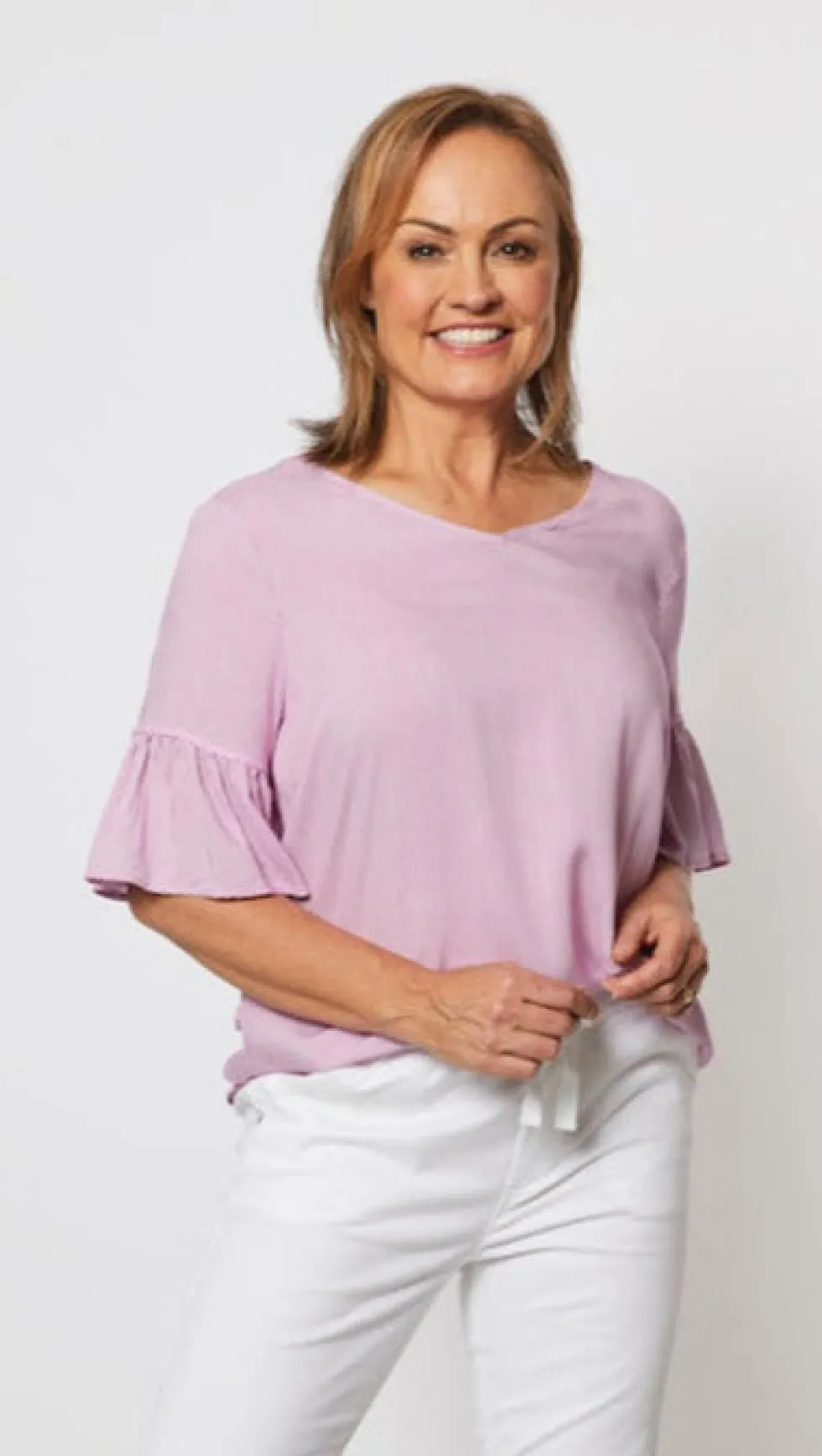 The Stripe V Neck Top by Threadz is a summer essential! Styled in a fluid light weight viscose this easy pop-over style will keep you cool, comfortable and stylish while offering excellent arm coverage. Features: Shallow V neckline