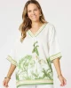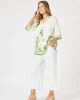 Amazon Print V Neck Top 47858 by Clarity at The Wardrobe. 80% Viscose / 20% Nylon Light weight,breathable Fabric Relaxed Fit Airy Short Sleeves Semi Sheer Fabric Unlined- nude underwear required. Can Pair with the Amazon Printed Wide Leg Pant Hip Length Model 175cm Tall wearing Size S/10