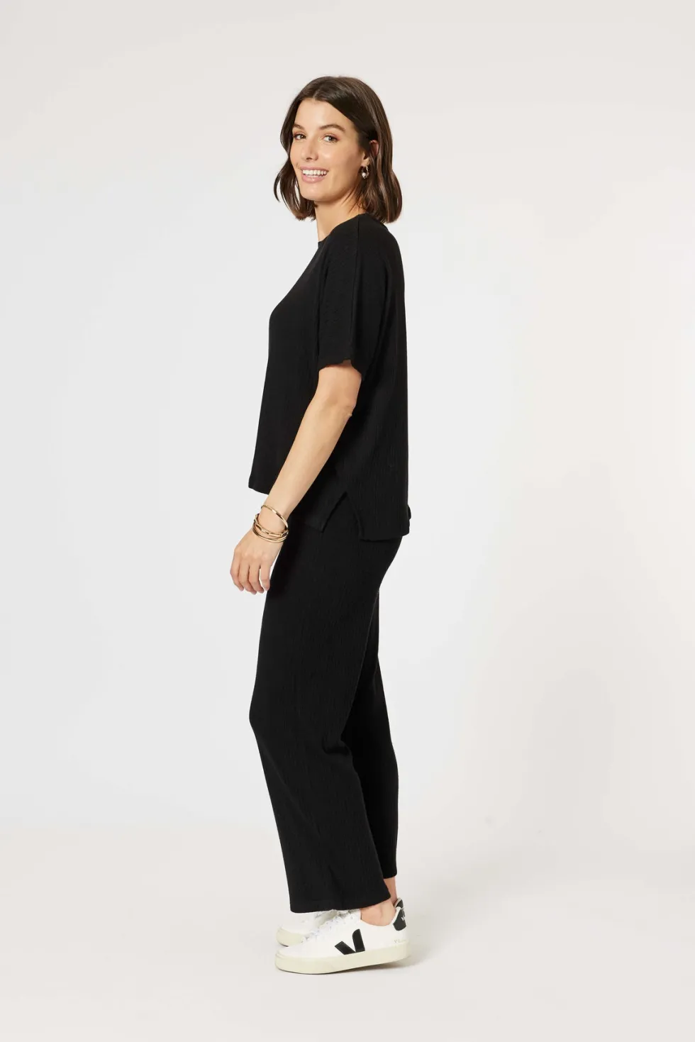 Ribbed Lounge Top – Black 46977 by Clarity at The Wardrobe Wrap yourself in luxurious comfort with our Ribbed Lounge Top. This soft and stylish top is the perfect addition to your loungewear collection. With its ribbed texture, it offers a cosy fit that is sure to make you feel relaxed and at ease. Pair it with our ma