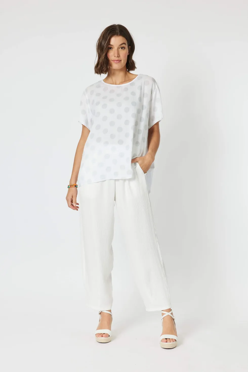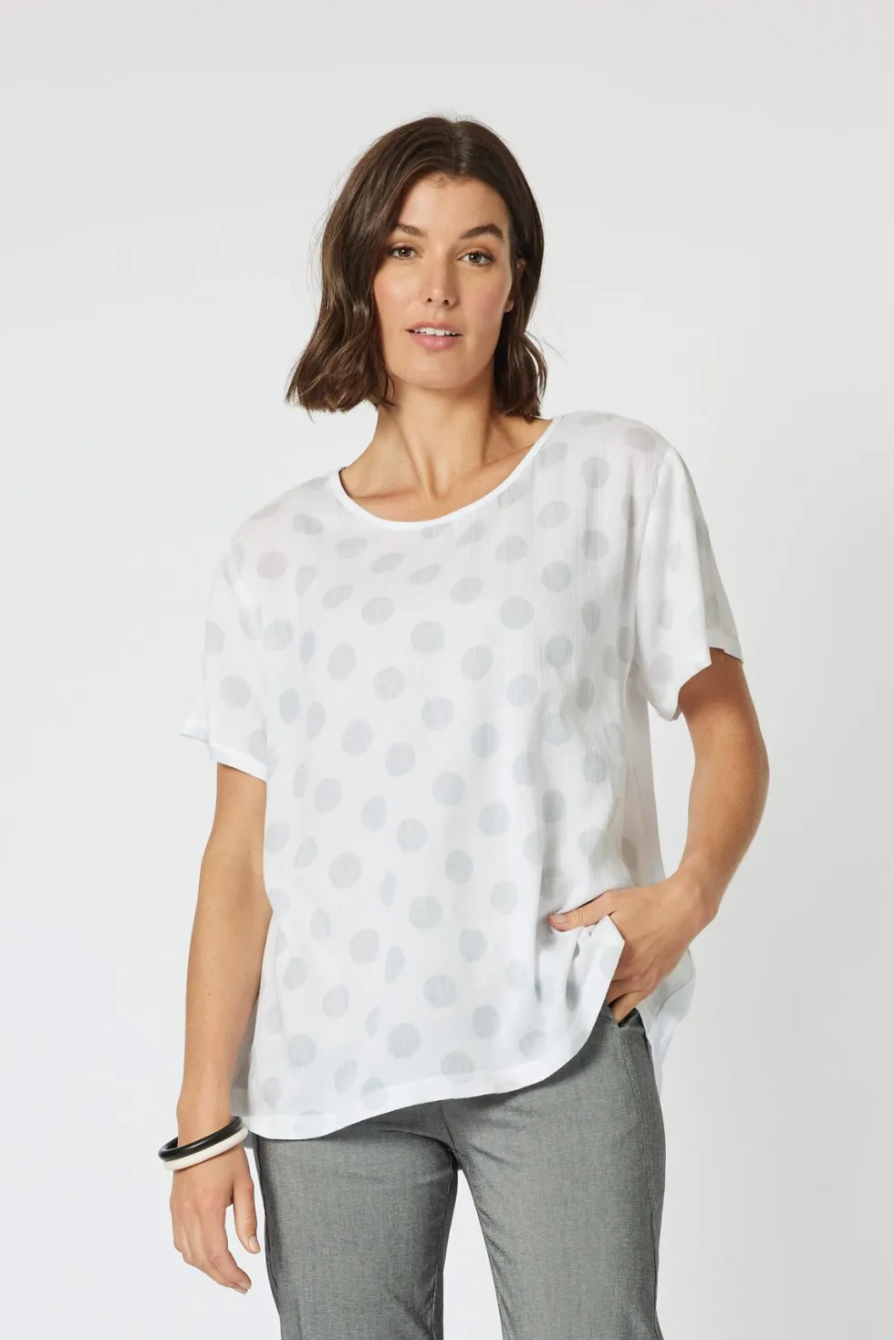 Features: The Riviera Spot Tee 46310 by Clarity combines playful polka dots with a relaxed fit A mix of fabrics, with a stretch knit back making it so comfortable to wear Easy pop over the head styles with the perfect short sleeve This tee is perfect for casual outings and effortless style Fit: True to Size Buy your us