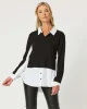 44102 – Sonia 2 In 1 Top by Clarity at The Wardrobe Features: Relaxed fit Collared Long sleeves Fit Guide: Main:65%Viscose/30%Polymadie/5%Elastane Contrast:100%Cotton Splices jersey knit and woven poplin Contrast collar, cuffs, sleeve and side panels 1/2 button placket