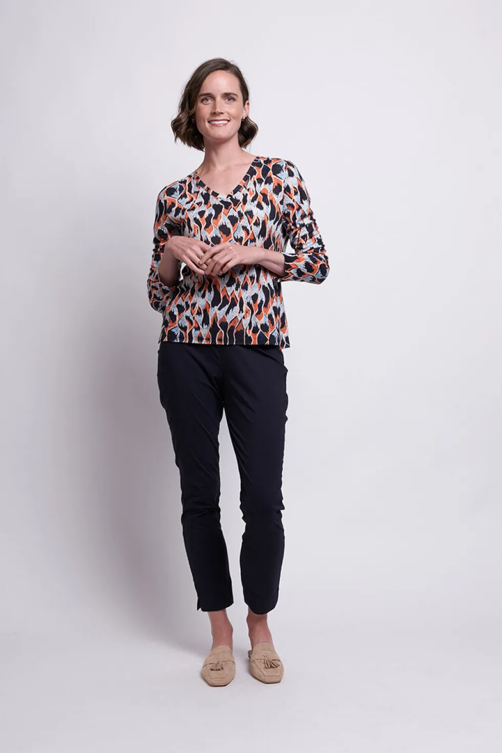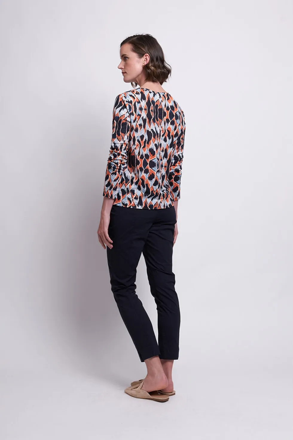 Wanna Spoon Top – Viper Orange 7627 by FOIL available at The Wardrobe 100% Linen Machine Wash with Similar Colours. Reshape whilst damp.
