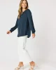 The Hammock & Vine Luxe Nehru Top 44625 at The Wardrobe Has been made from a highly spun viscose, which means it feels as soft as silk. This stunning piece has been designed with an elasticated cuff to offer versatile styling options. Having a Nehru collar means you have many options for your neckline as you can