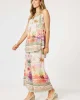 Passport Cami 48187 – Sunset Multi by Hammock & Vine at The Wardrobe Features: Bring vacation vibes to your everyday wardrobe with the Passport Print Cami. Featuring an eye-catching tropical print in sunset-inspired hues, this sleeveless top showcases playful passport stamp graphics, palm trees, and coastal motifs.