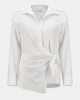 City Line Stretch Poplin Fitted Top 253132 by Joseph Ribkoff at The Wardrobe. This classic top is designed to suit every occasion and every style. Impeccably tailored in a stretch poplin fabric, this piece features a chic shirt collar and cuffed long sleeves to create a polished look. The overlap with tie detail on the