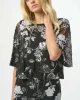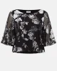 Sequin Embroidered Floral Print Boxy Top 254181 by Joseph Ribkoff at The Wardrobe. Steal the spotlight in this embroidered sequined top, showcasing a stunning floral design and elegant flared sleeves. Lined for comfort, it’s the perfect choice for any special occasion. 100% Polyester Mesh, novelty fabric Floral print B