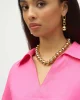 Palm Springs Linen Boxy Top with Shirt Collar – Bubble Gum -252933 Cut from a lightweight and breathable linen fabric, this relaxed top offers comfort and style thanks to its understated details. The polo-esque shirt collar, crossover slit at the cuffs, and soft back pleat give this piece a unique look that's easy to l