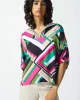 Paradiso Georgette Geometric Print Box Top 242176 by Joseph Ribkoff at The Wardrobe This is a sale item and is only eligible to return for a store credit or exchange. Unleash your inner fashion maven with a sassy geometric-printed georgette boxy top. Short dolman puff sleeves add a touch of whimsy, while the wide s