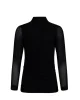 Aston Ruched Top – Black Multi 2932PL by Loobie's Story at The Wardrobe. Fitted mesh top with a grown on neckline, with ruching down the centre front create a flattering fit. Self lining through body. White image so you can see the gathering. 90% Polyester 10% Spandex Gentle cool machine wash. Do not bleach. Dry away