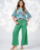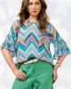 Wanderlust Top – Indigo LS3070 by Loobie's Story at The Wardrobe Printed sheer top with a crew neckline with a square hem and side splits. Flared sleeves feature gathered tiers in a contrast micro print. Printed A-line cami included. 100% ViscoseInstructions:Cool hand wash using mild detergent, do not machine wash.