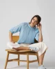 Chroma Tee – Blue 1377 by Madly Sweetly at The Wardrobe Relaxed top with a raglan sleeve, featuring small ruffles around the neckline and  elasticated sleeve cuffs. 80% Rayon, 20% Nylon Gentle cold machine wash with like colours, using mild detergent. Do not rub/soak//wring/bleach. Do not tumble dry.