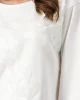 Bloom and Grow Sequin Flower Top – Milk 409100 by Monari at The Wardrobe. High-quality cotton Sweatshirt Floral pattern Tone-on-tone sequins Regular fit Boat neck Long sleeves Sleeve cuffs with crimping Logo plate The model is 1.77 m tall and wears size 36. The length of size 38 is 56 cm This sweatshirt captivates with