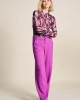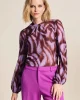 Brown Feathers Top 7950 POM Amsterdam at The Wardrobe. 94% Recycled Polyester 6% Elastane This purple mesh top with feather pattern features a handmade print. The print is inspired by a bird's feathers. The fabric is made of 95% recycled polyester, making this a more sustainable item.