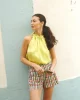 Summer Lime Top 9163 by POM Amsterdam Green halter top with a satin look. Thanks to the tie strings, the top can be adjusted as desired.• Lime green top• Supple, shiny fabric• Sleeveless• A-line fit• Sustainable fabric 100% recycled polyester