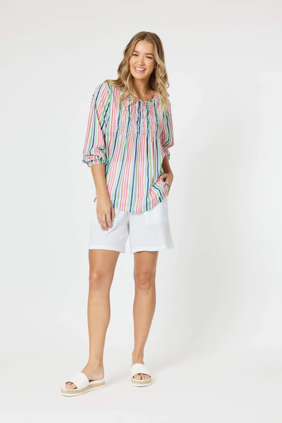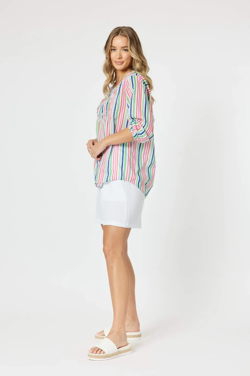 Add the perfect pop of WOW to your wardrobe in the stunning Stripe Tunic by Threadz An easy pop over the head style that works with so many colours, making your styling options endless This pure cotton tunic is perfect to wear now with a denim jacket and later with the Byron cotton shorts Fit: True to Size Buy your usu